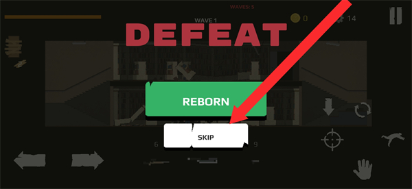 4、如果最后战斗失败出现DEFEAT界面,我们需要点击SKIP跳过重生的流程,重新规划策略,继续参与僵尸对战。