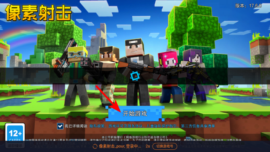 1、游戏中点击开始游戏按钮,可进入像素射击的游戏世界,这是开启游戏的关键操作,点击后将开启射击竞技之旅。