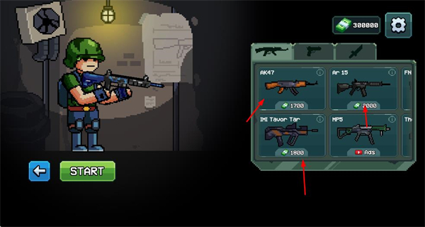 4、在武器界面,使用金币解锁或升级武器,提升战斗能力,应对更强敌人。