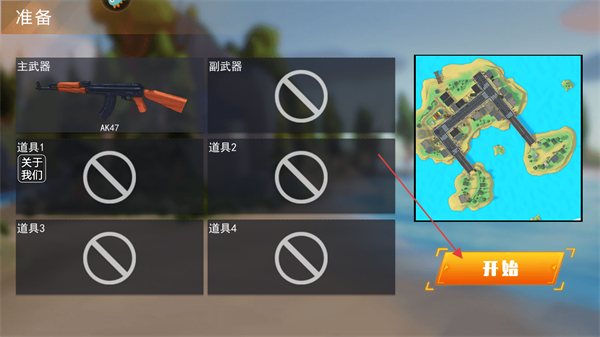 1、选择主武器AK47,点击开始进入战场。