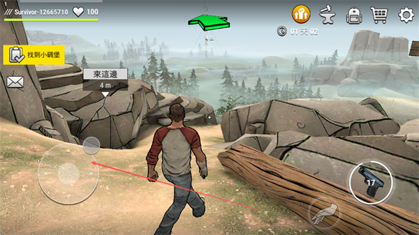 1、根据任务指引如找到小碉堡,操控角色在野外移动,探索地图。