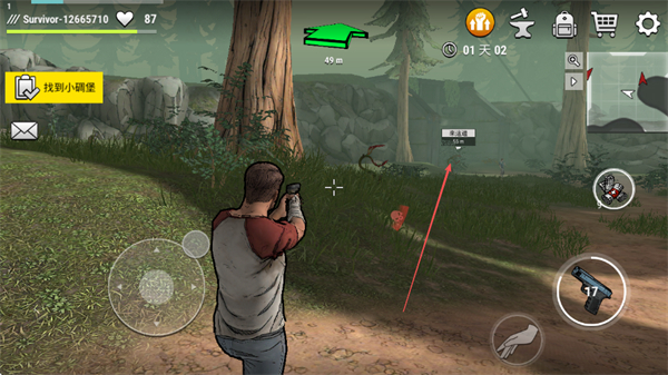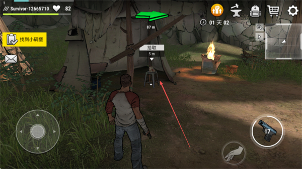 2、在营地等区域拾取物资如枪械,提升生存和战斗能力。