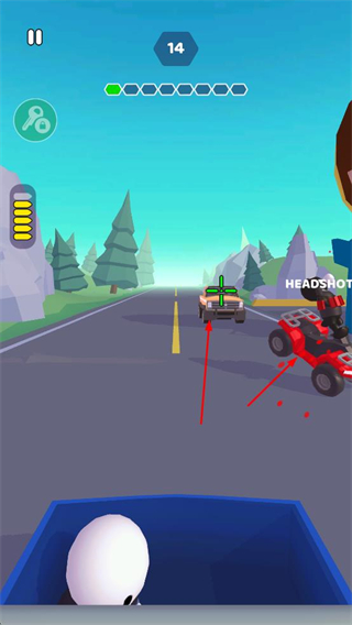 3、进入射击关卡后,瞄准敌方车辆区域射击,触发HEADSHOT,推进关卡进程提升战绩。