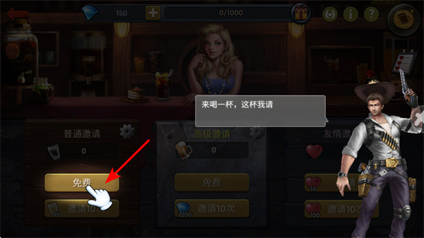 2、在酒馆点击普通邀请的免费按钮,可招募英雄,这是组建队伍的关键步骤,招募时需多次尝试以获取强力英雄。