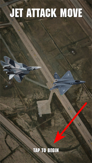 1、进入游戏界面后,点击TAP TO BEGIN开启喷气式战机的战斗征程,这是进入游戏的关键操作,准确点击方可开启实战关卡。