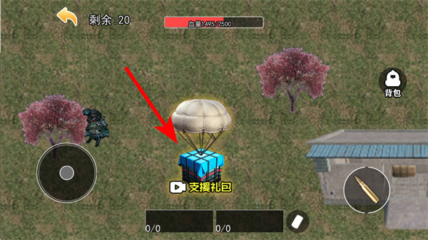 4、战斗过程中,靠近红色箭头指向的空投礼包,后续可开启礼包获取高级物资,提升角色战斗能力,助力完成关卡目标。