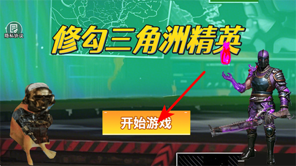 1、进入修勾三角洲精英启动界面后,点击红色箭头指向的开始游戏按钮,进入游戏的对战关卡,这是开启游戏的关键操作。