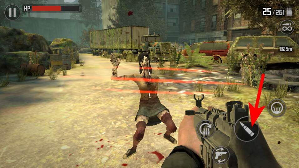2、找到箭头标注的道具按钮,点击它切换武器弹药,这是补充战斗资源的基础操作,点击后可确保武器持续输出。