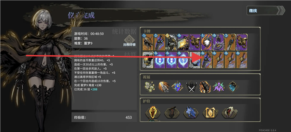 3、完成一局后,查看统计数据界面,了解游戏用时、难度等信息,分析使用过的卡牌表现,总结经验。