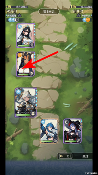 4、在战斗回合中,点击箭头指向的技能触发区域,这是释放角色技能的必要操作,按指引操作即可完成技能释放。