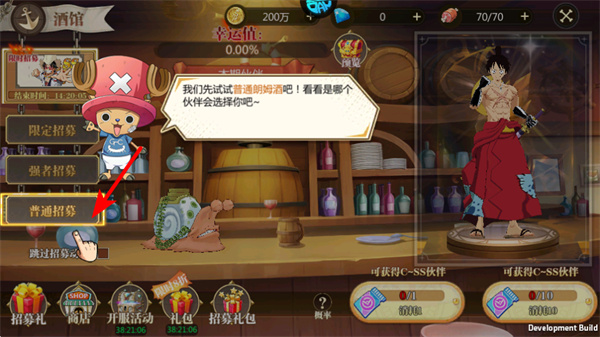 3、进行普通招募时,点击按钮,可免费招募伙伴,利用免费招募机会能节省资源,持续扩充船员阵容。