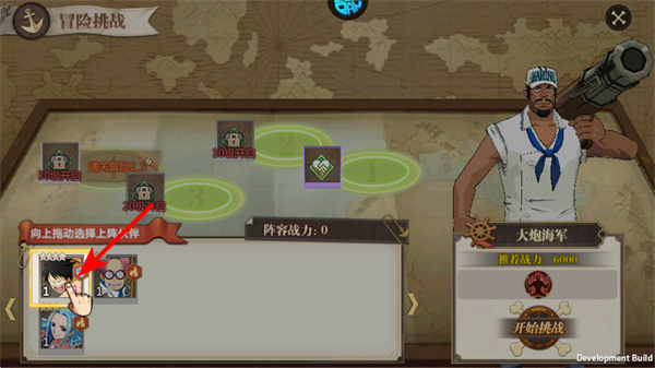 4、在冒险挑战界面,向上拖动选择上阵伙伴,合理搭配伙伴组成阵容,这是提升战力参与挑战的关键。
