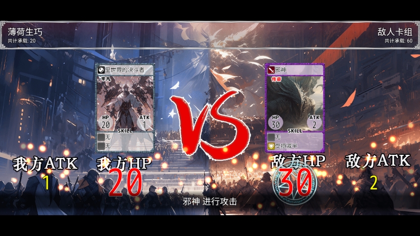 4、接着我们就可以看到利用卡牌的作战方式,与对方开启攻击对战,注意双方的血量值和攻击值哦。