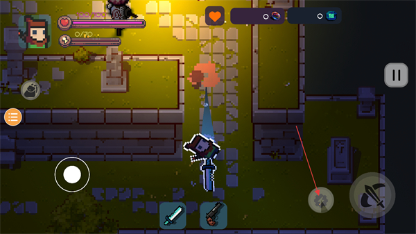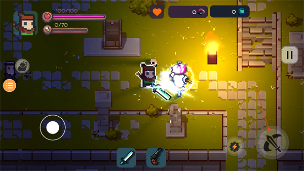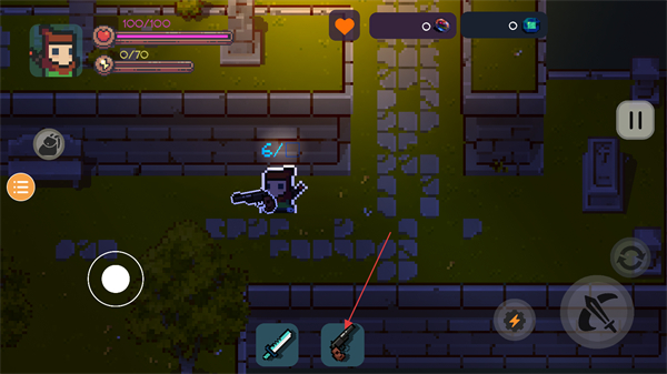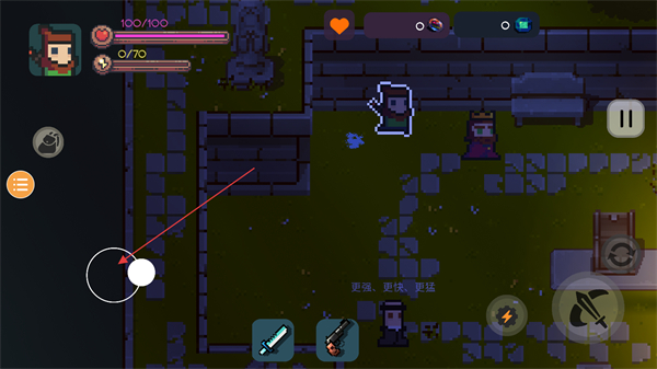 1、进入游戏地牢后,通过左下角的方向轮盘控制角色的移动。
