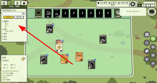 2、进入游戏后,左侧会显示主要任务,比如采摘浆果、碎石取木等,需按任务要求逐步完成。