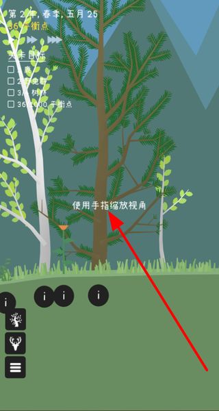 3、放大缩小视角,使用手指缩放视角,查看小松林的不同区域,观察植物和动物的生长情况,优化经营策略。