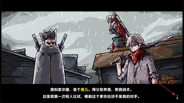 2、进入游戏剧情后,画面将展示角色索尔徳的背景设定,这类界面用于交代角色背景,后续点击可推进剧情。