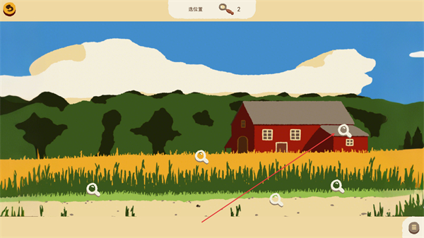 2、在农场场景中,点击放大镜标识的区域,寻找目标昆虫。