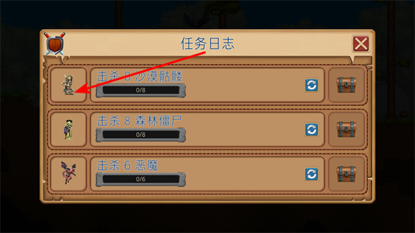 4、查看任务日志,明确当前任务目标,如击杀沙漠骷髅等,根据任务要求开展战斗和探索,完成任务可获取宝箱奖励,提升整体实力。