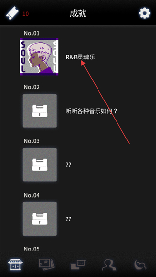 4、进入先祖遗愿成就界面,已解锁RB灵魂乐成就,后续可完成条件解锁其他成就。