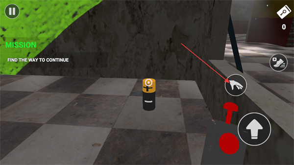 4、这是该关卡的场景界面,需通过交互按钮收集场景内的道具如界面中的电池类物品,这类道具是推进任务的重要元素。