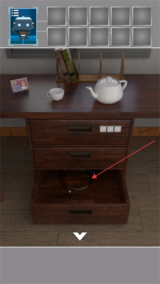 4、进入书桌场景后,操作界面查看抽屉,点击抽屉能获取其中物品,这些物品是后续解谜环节的关键道具。