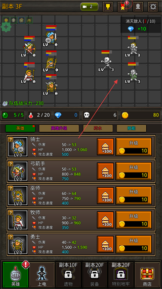 3、消耗金币可升级职业,提升HP、攻击速度等属性。