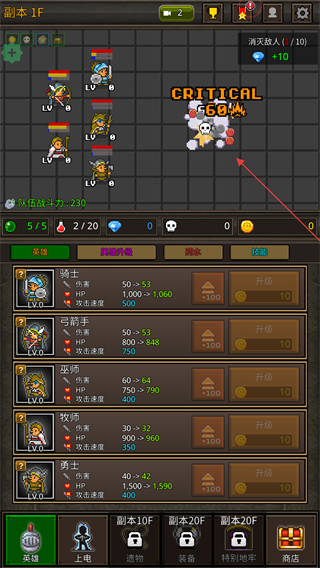 2、挑战副本时,优先保证骑士等前排职业的生存,利用暴击快速清怪。