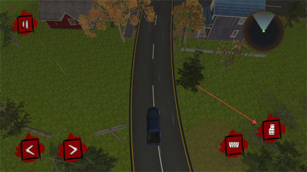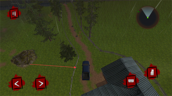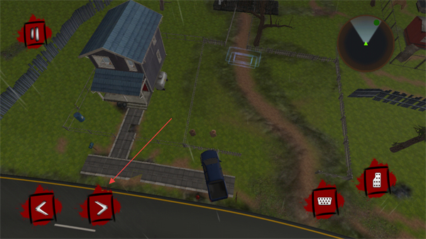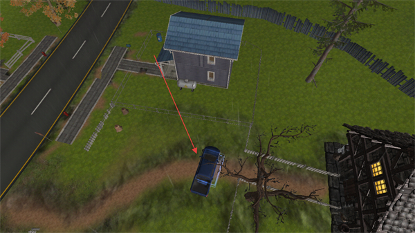 4、继续移动车辆,进入房屋周边的小路区域,推进探索流程。