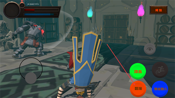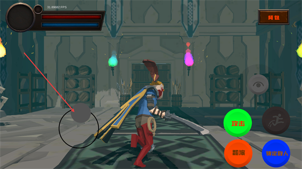 2、在游戏的游玩界面里,通过左侧的移动轮盘操控角色移动,同时可借助右侧的攻击、翻滚等按钮执行相应操作。