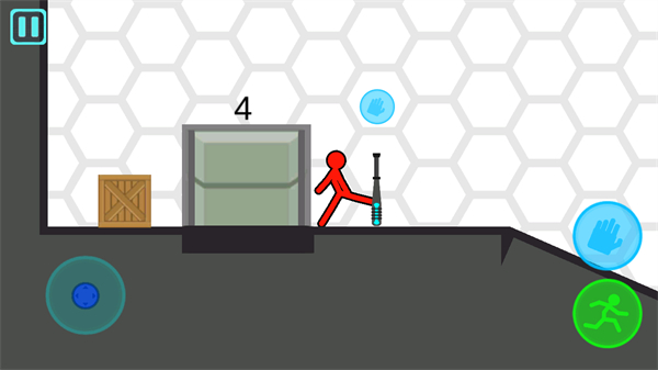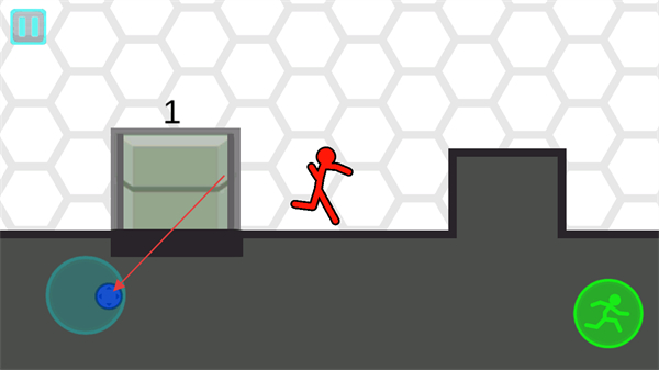 2、进入第一关后,操作左侧蓝色按钮控制火柴人移动,玩家需要操控角色避开障碍推进关卡。