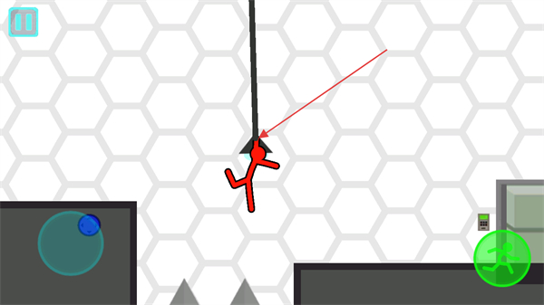 3、当火柴人触碰到尖刺类障碍时会陷入危险,通过场景内的其他物品进行躲避,如可以抓住吊灯进行跳跃以继续游戏。