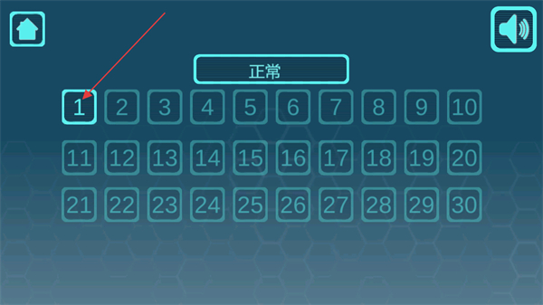 1、这是关卡选择界面,界面上方的正常为模式标识,点击选中的关卡1即可进入第一关开始游戏。