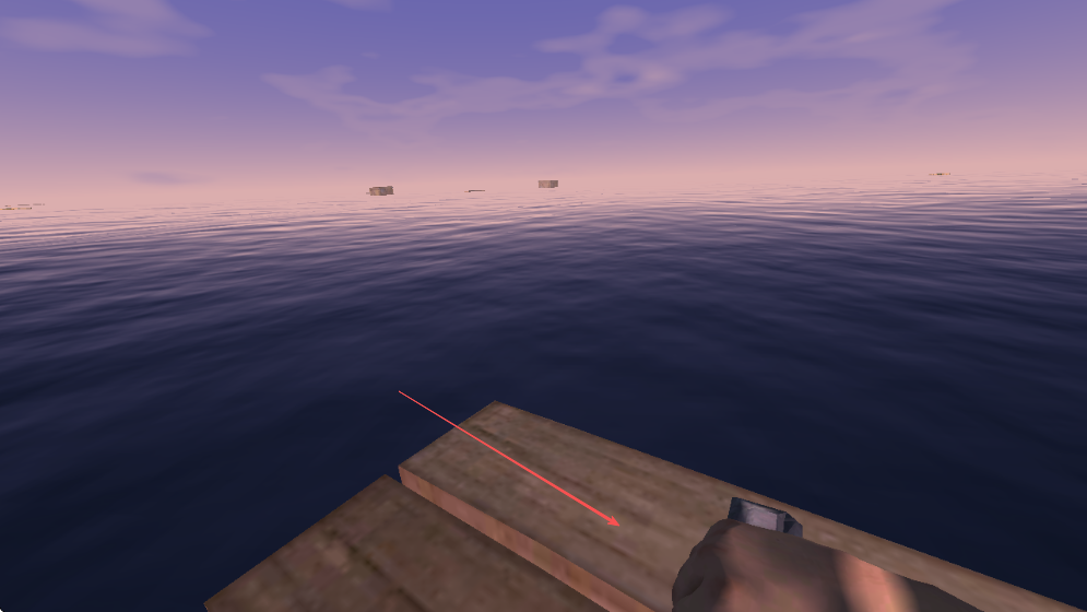 1、进入游戏在木筏上熟悉环境,查看周围海面情况准备收集资源。