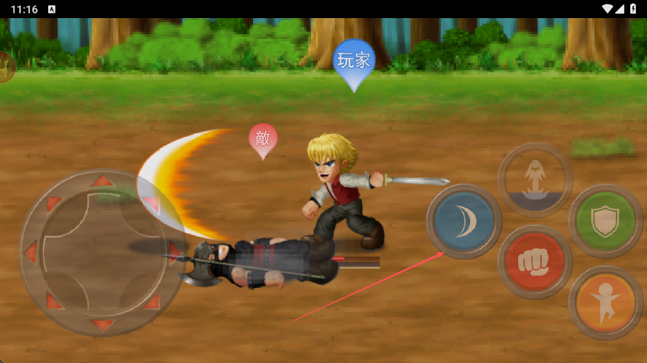 2、点击右侧技能按钮释放攻击技能,对敌人造成伤害。