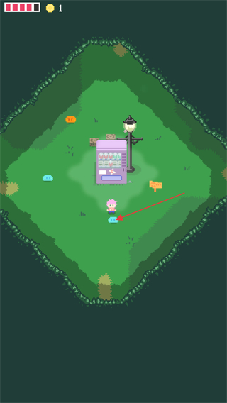 4、击败史莱姆后会掉落金币,操纵角色收集该硬币,收集后界面上方的金币数量会相应增加。