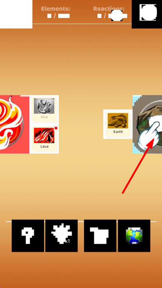 2、选择Earth土元素,与火元素进行合成,元素合成是游戏的核心玩法,不同元素组合生成新的物质如熔岩,丰富内容。
