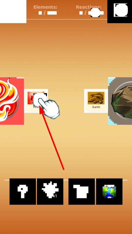 1、基础元素合成操作:打开两个包含不同元素的分组,将其中一个分组移动到另一个分组中,触发元素融合,如土和火产生岩浆,土和风创造尘土,通过操作积累元素。