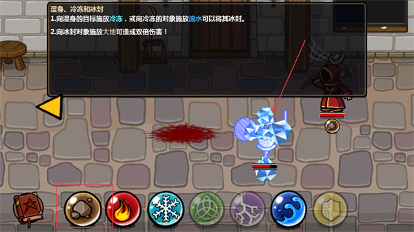 2、点击下方冰元素,长按对目标释放,将目标冻住。