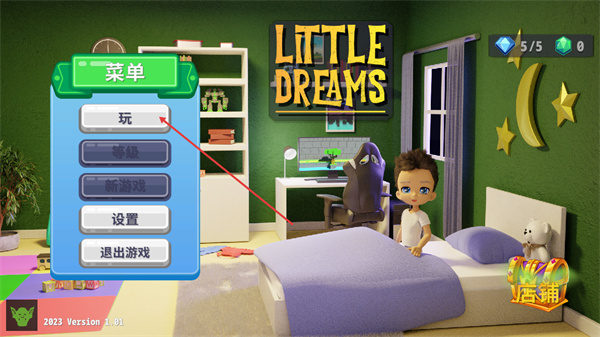 1、在小小的梦的菜单界面中,点击玩选项,进入游戏的关卡场景,开启游戏的探索流程。