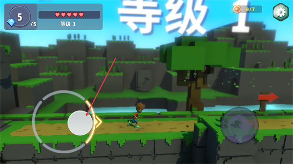 2、进入等级1的关卡后,通过左侧的移动控制按钮来操控角色移动,在当前的场景中进行探索推进。