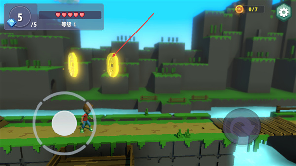 3、处于等级1的场景里,操控角色向发光的金币位置移动,靠近后即可完成该金币的收集,积累关卡进度。