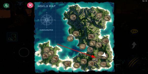 4、打开世界地图,查看各区域的恐龙分布,选择目标区域进行移动猎杀,探索不同区域,推进游戏进度。