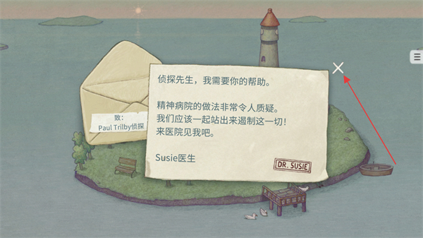 2、进入游戏后会收到Susie医生的信件,获取到信件内容后知晓该任务指引,继续后续解谜流程。
