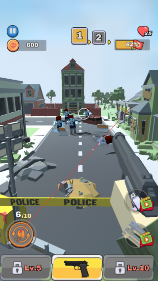 4、持续观察僵尸出现的位置和数量,合理调整射击角度和节奏,尽可能多地消灭僵尸,完成关卡目标。