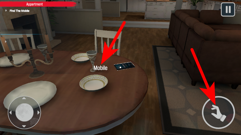 3、在场景中找到目标物品如手机,点击右侧交互键完成收集。