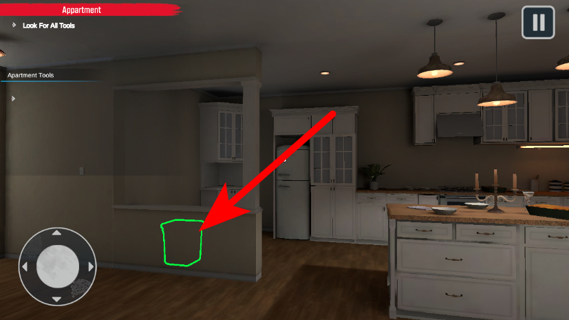 4、继续移动视角探索场景,找到标注区域,收集所需工具道具。