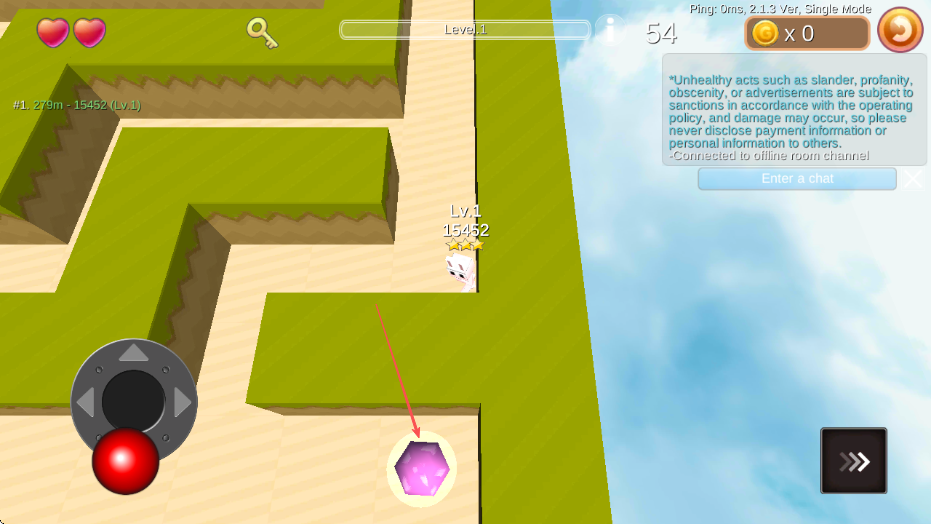 1、通过左侧虚拟摇杆控制角色移动,在迷宫中探索前行。