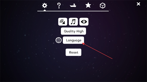 4、完成语言切换后,点击设置界面右上角的叉叉按钮,关闭该设置界面,回到游戏的主场景继续进行后续的游戏操作。