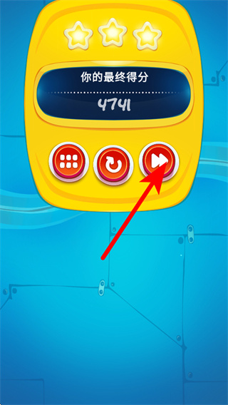 4、完成关卡后,点击红色箭头指向的箭头按钮,进入下一个关卡,继续推进游戏流程,同时可查看当前关卡的得分情况,记录游戏进度。
